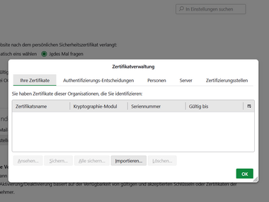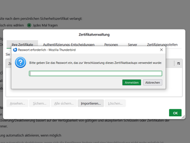 Importing the user certificate into Thunderbird