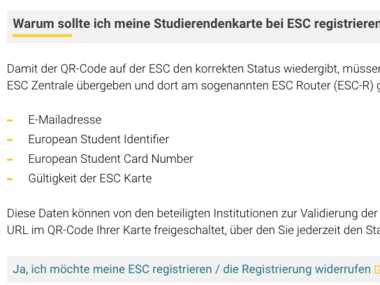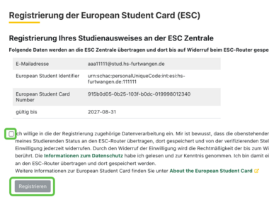 Registrierung der HFU Card als European Student Card (ESC)