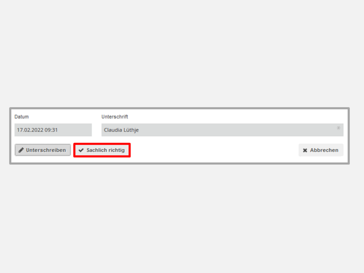 Sobald Sie unterschrieben haben (Zertifikat erforderlich), sehen Sie den "Sachlich richtig"-Button.