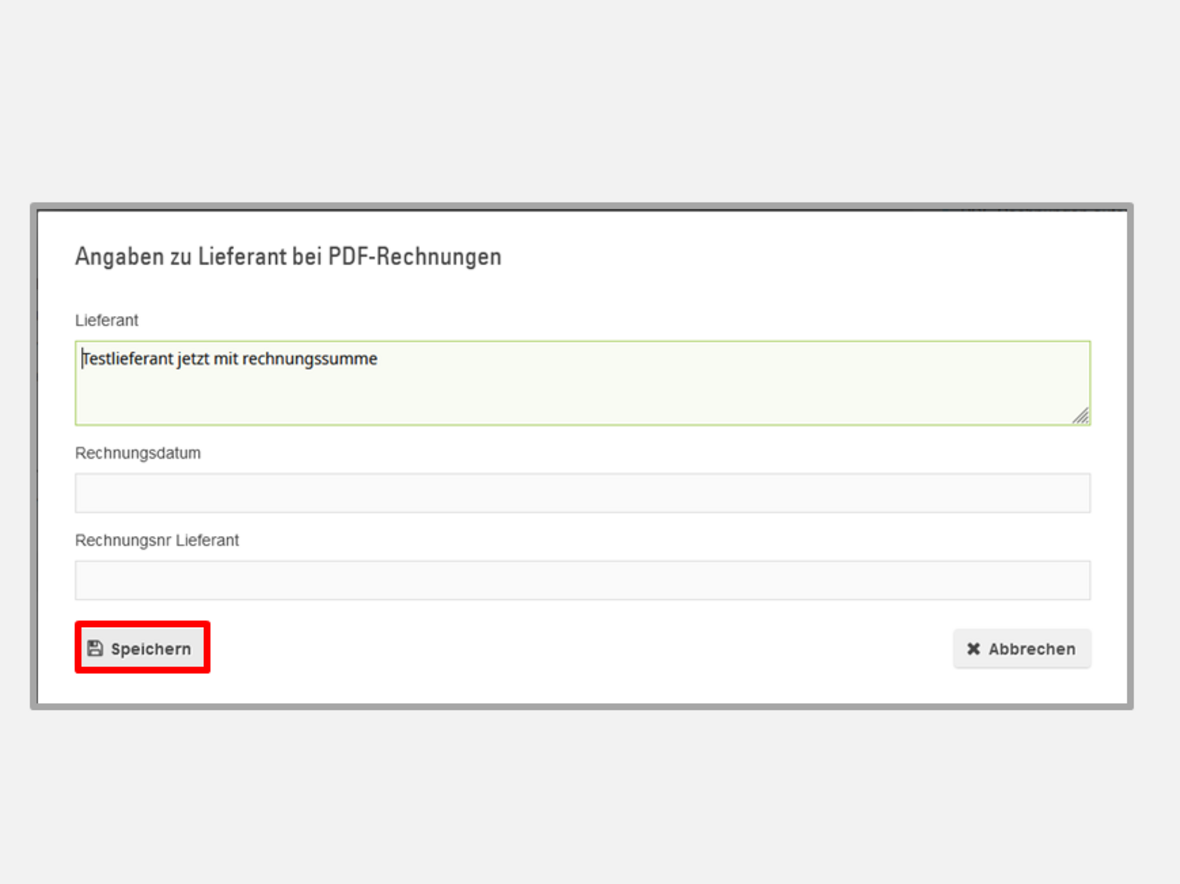 Bei einer PDF-Rechnung stehen im Lieferantenfeld nur geschätzte Werte. Diese können fehlerhaft oder auch nicht vorhanden sein.