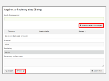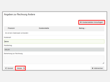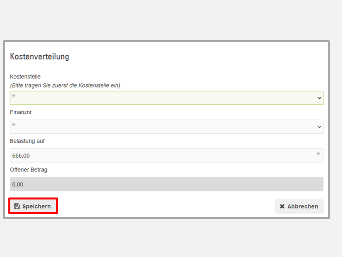 Bitte beachten Sie, dass Sie nur Kostenstellen verwenden können, für die Sie auch zeichnungsberechtigt sind.
