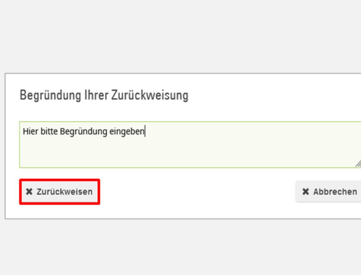 Geben Sie eine passende Begründung ein und klicken Sie auf "Zurückweisen".