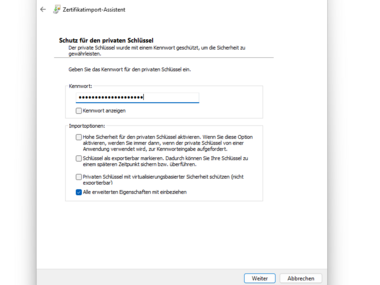 Der Import Ihres Zertifikats ist nötig: