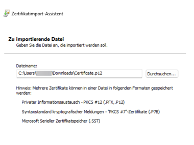 Import des Nutzerzertifikats in den Browser