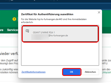 Wenn Sie das Zertifikat bereits unter Windows installiert haben (siehe hierzu Helpcard Interner Link öffnet sich im gleichen Fenster:Nutzerzertifikat-Installation unter Windows (MYCERT-10-020), ist der Import in den Browser nicht notwendig.